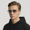 Rivière Rimless Sunglasses combine lightweight comfort with undeniable presence. Gradient blue diamond cut lenses offer full UV protection while the 18k gold-plated accents add a touch of luxury. Sleek, refined, and effortlessly stylish, these diamond-cut sunglasses are designed to turn heads wherever you go.
