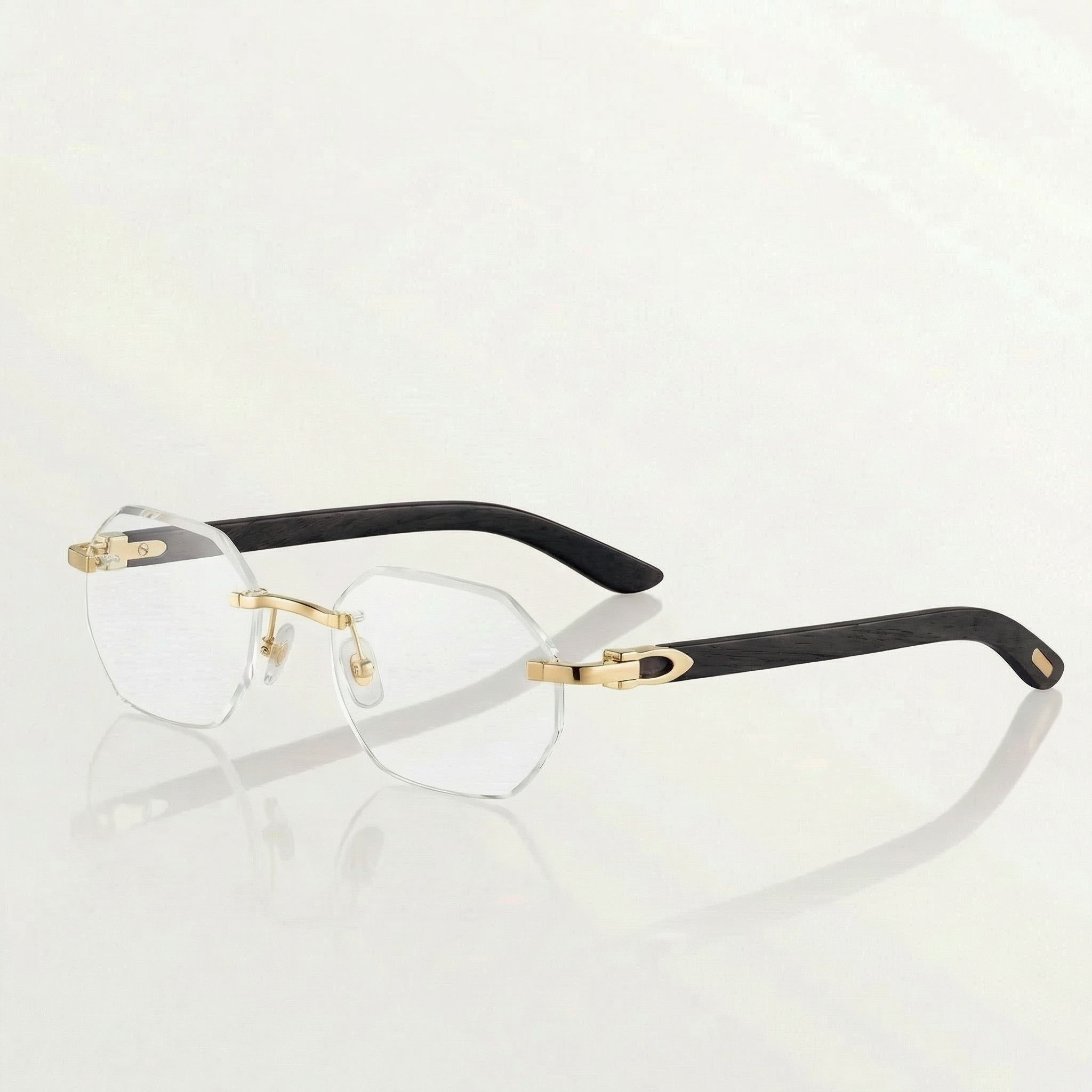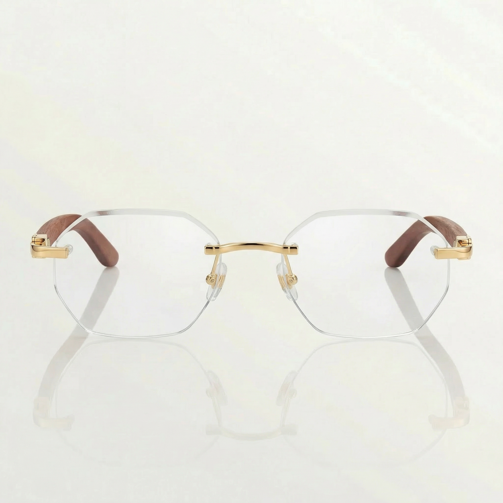 Ultra-lightweight rimless design. Finished with 18k gold-plated accents for a look that speaks before you do.