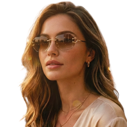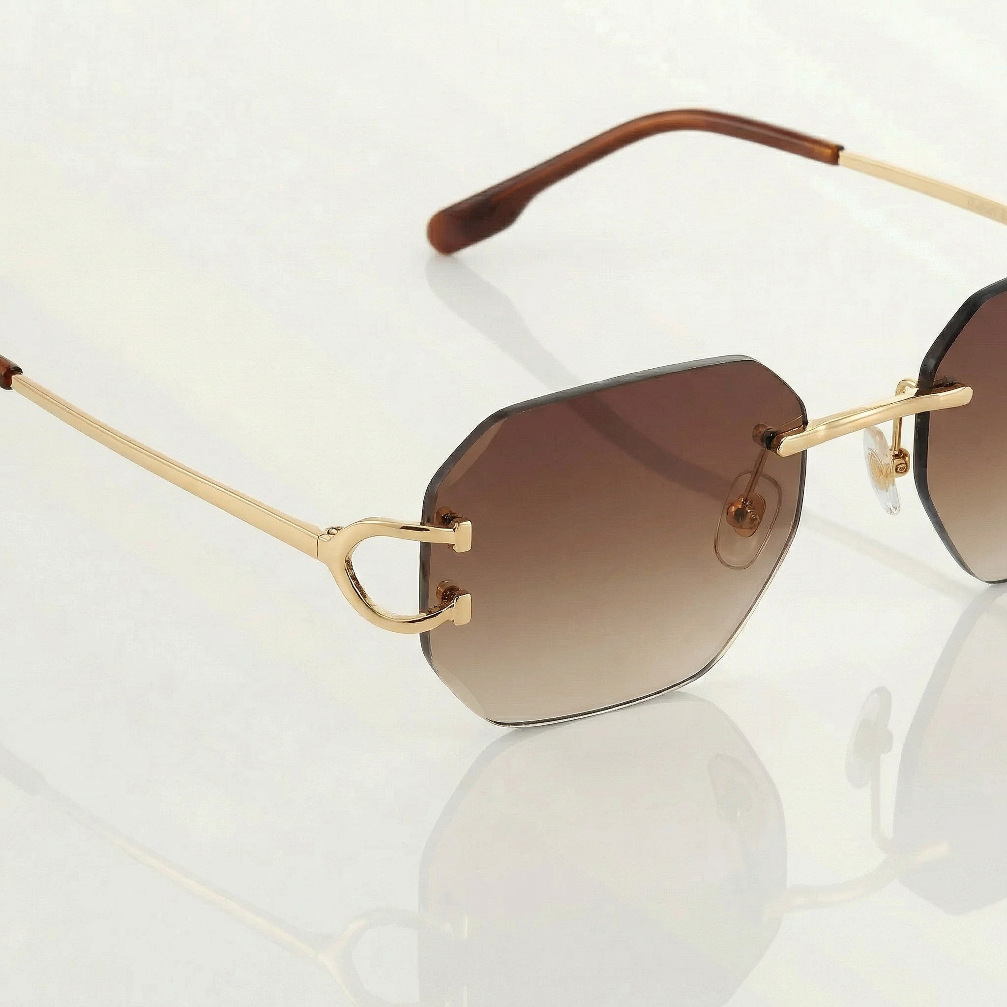 Rivière Rimless Sunglasses combine lightweight comfort with undeniable presence. Gradient blue lenses offer full UV protection while the 18k gold-plated accents add a touch of luxury. Sleek, refined, and effortlessly stylish, these sunglasses are designed to turn heads wherever you go.